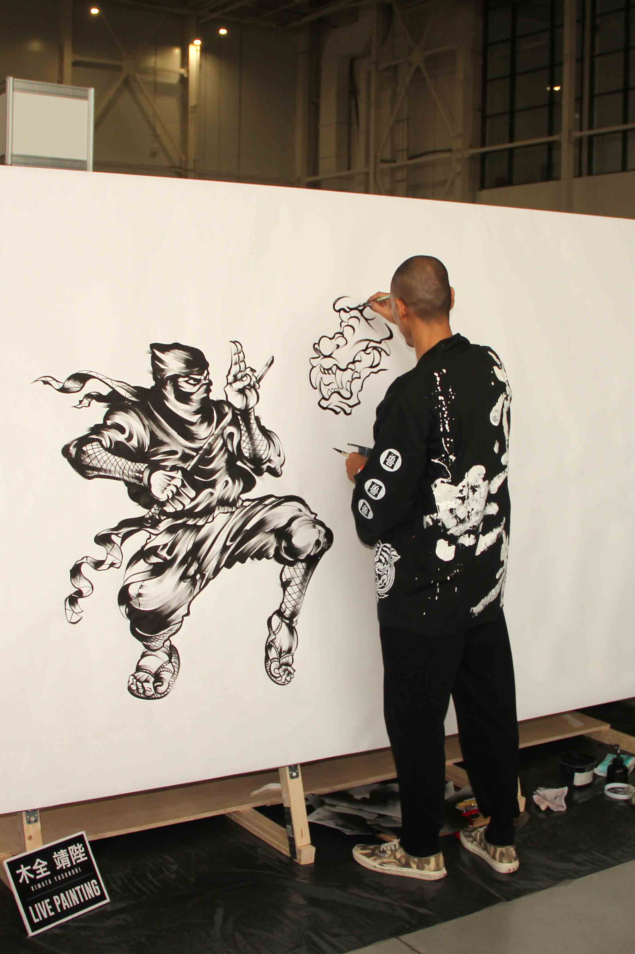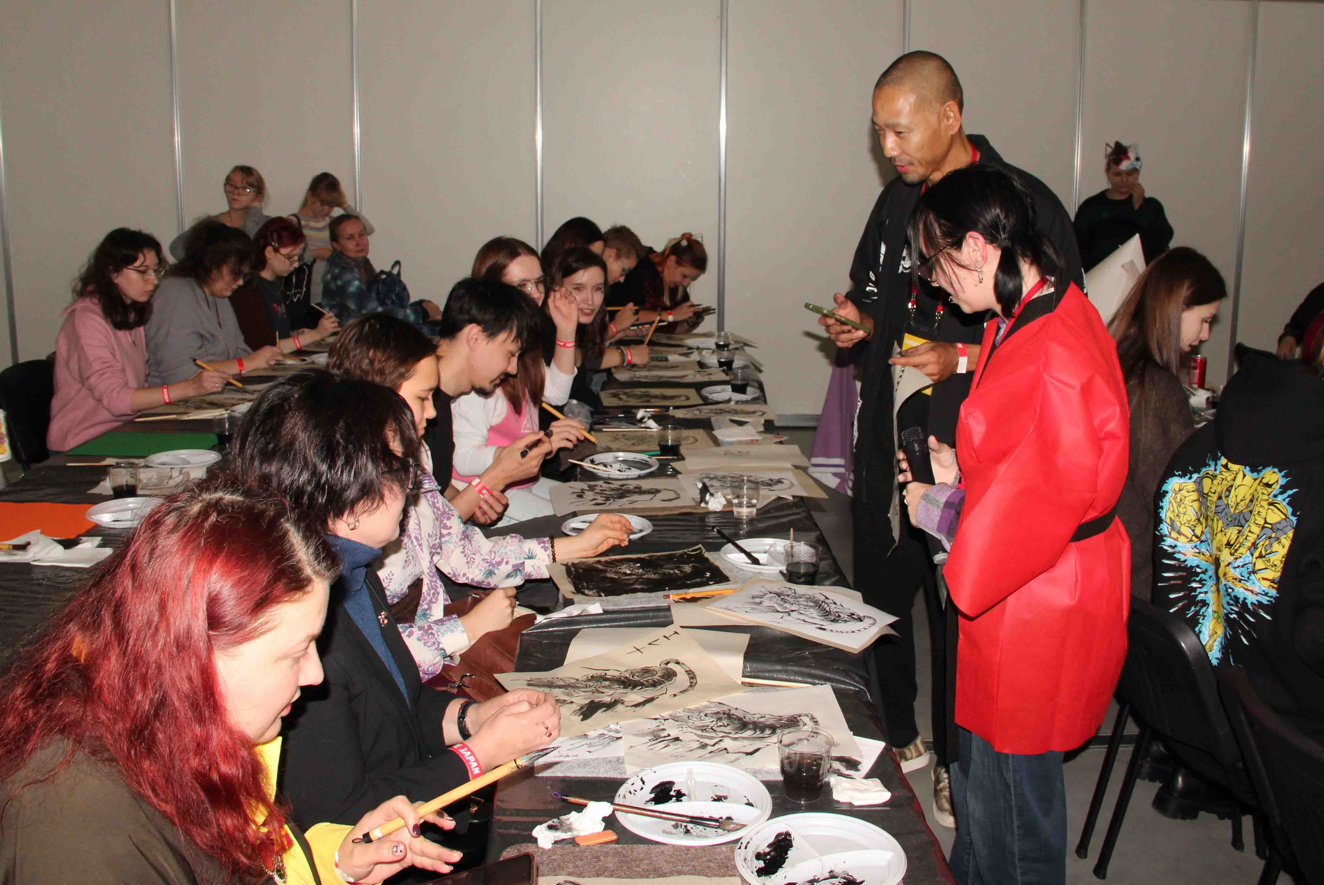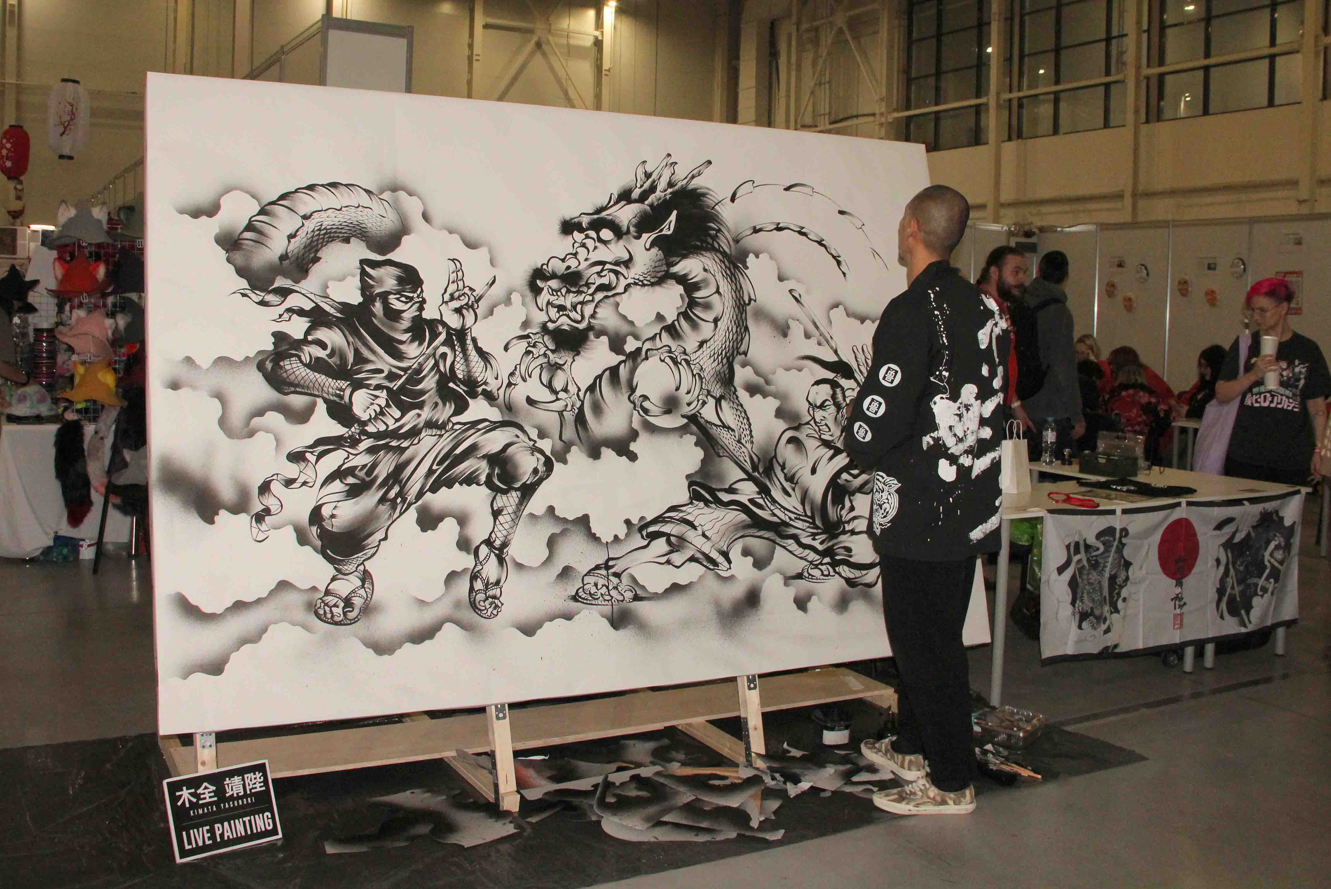 Кимата проводил для всех желающих мастер-класс по живописи, а в свободное время в режиме «прямого эфира» рисовал тушью большой арт с драконом и бойцами.