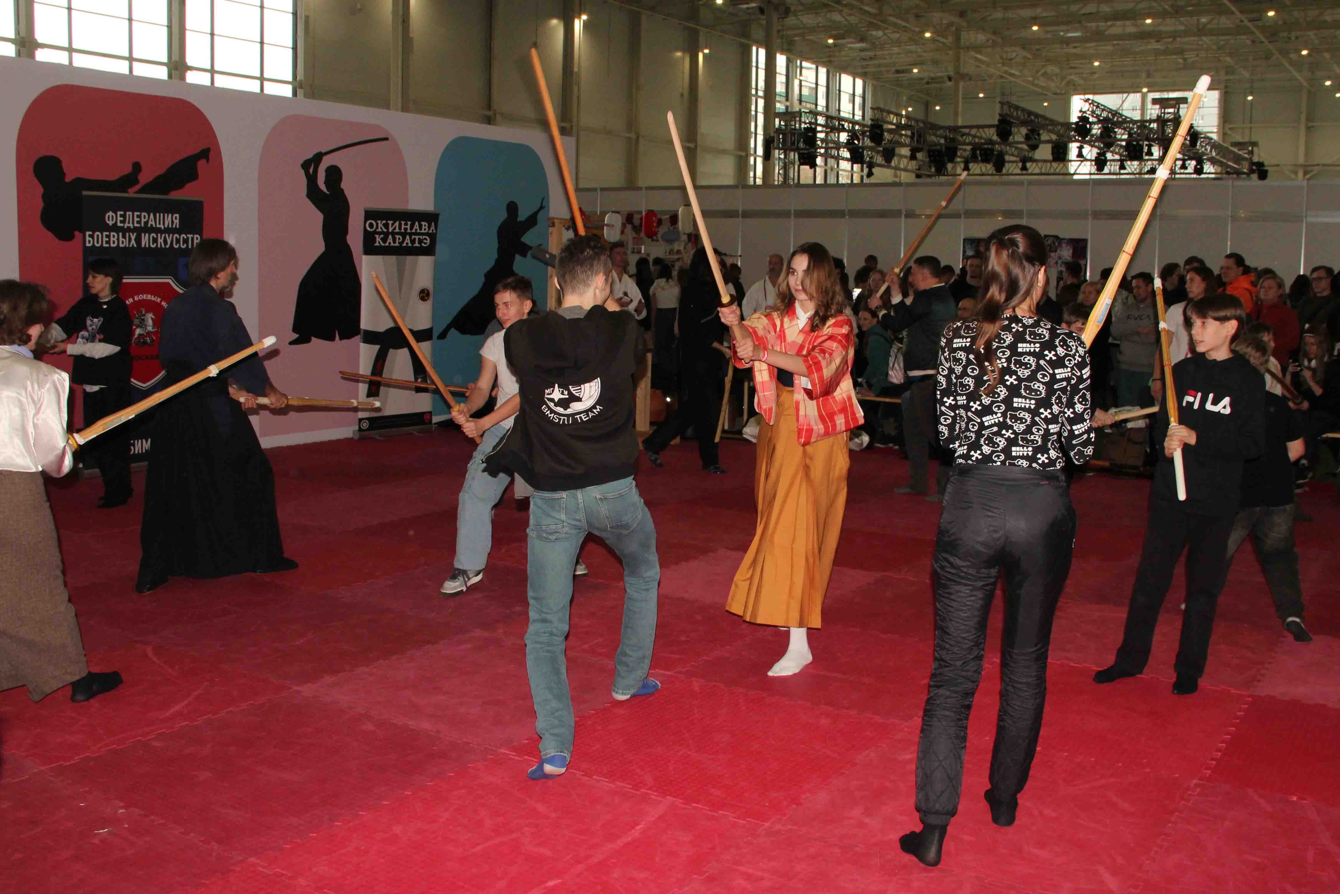 В спортивной зоне проходили мастер-классы по айкидо, иайдо, каратэ и другим боевым искусствам. А в зоне с развлечениями гости соревновались на палочках мамэ-хакоби, опробовали дженгу дарума-отоси и многое другое.
